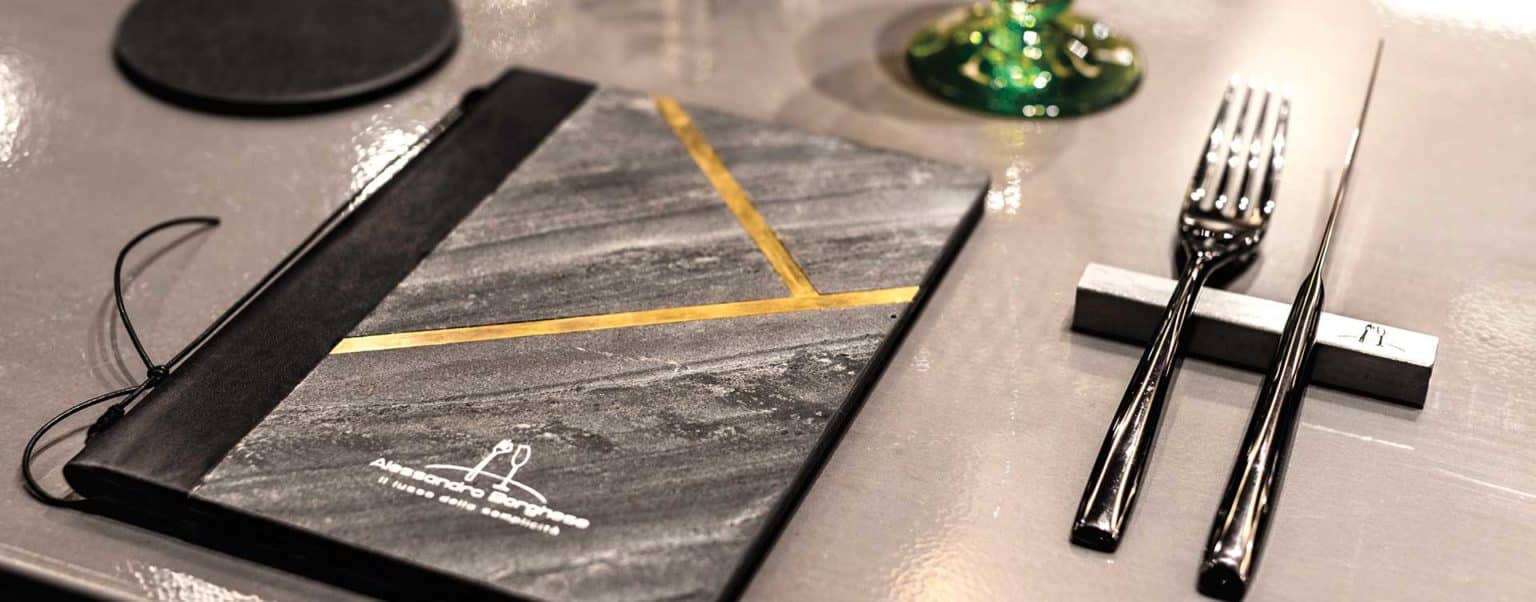 Every single menu holder and table setting we create stems from the creativity of our designers and the attention we pay to every detail: unique pieces of tailored design, handmade in Italy by the finest artisans and bookbinders in our country.