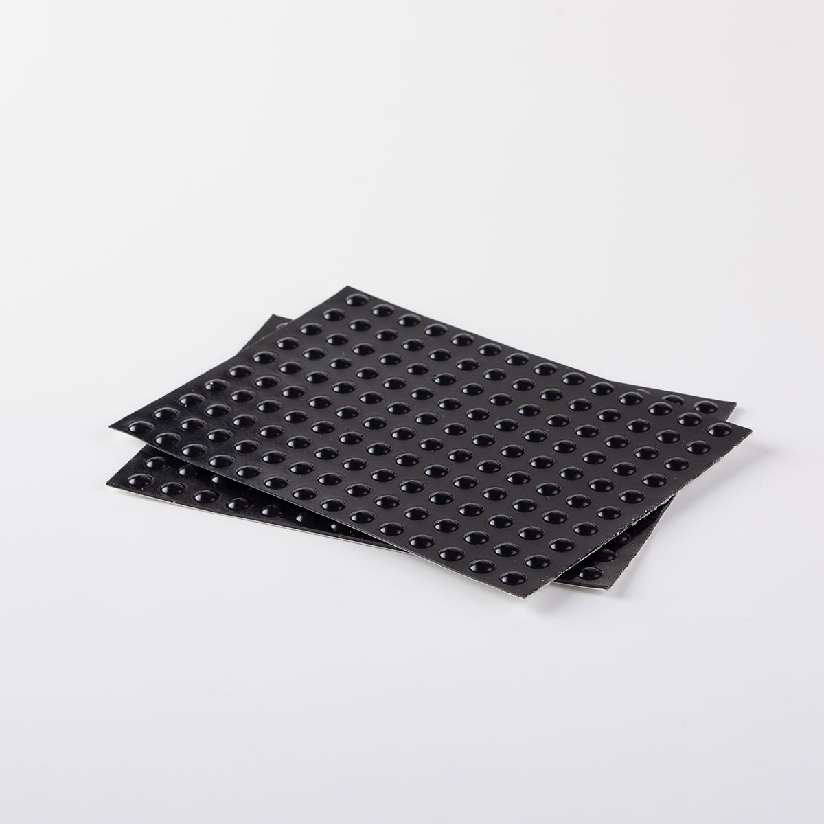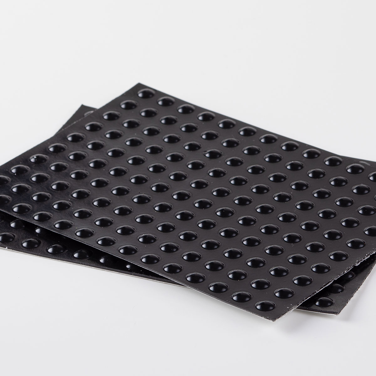 Black adhesive rubber feet Ø 8 mm for underplates, coasters, and displays.