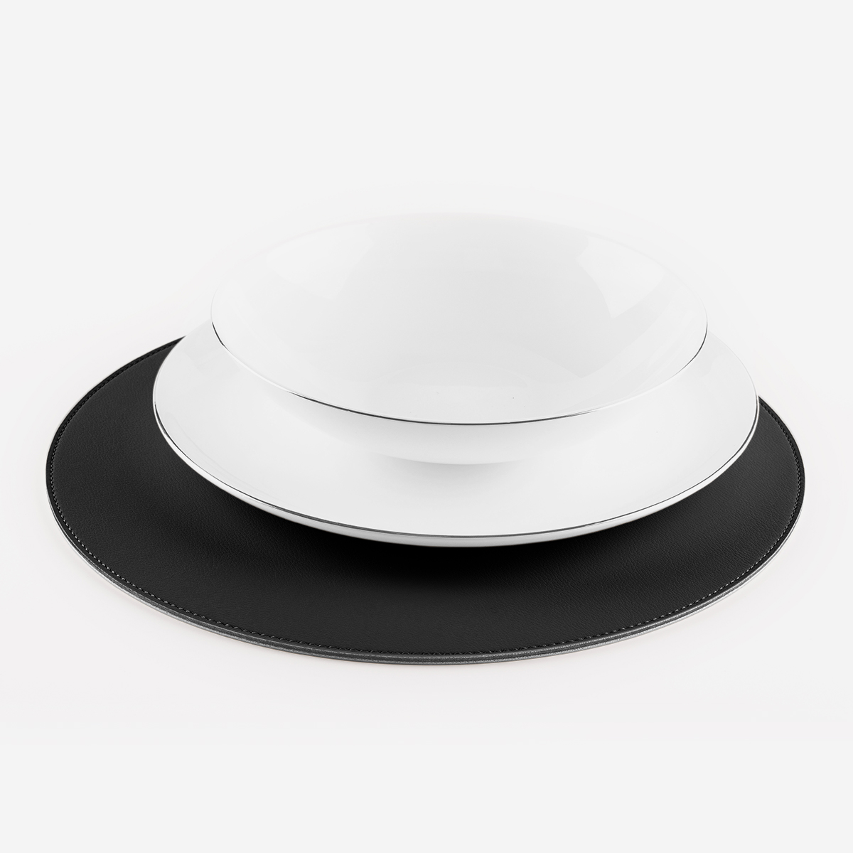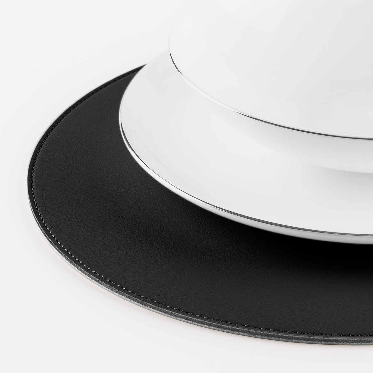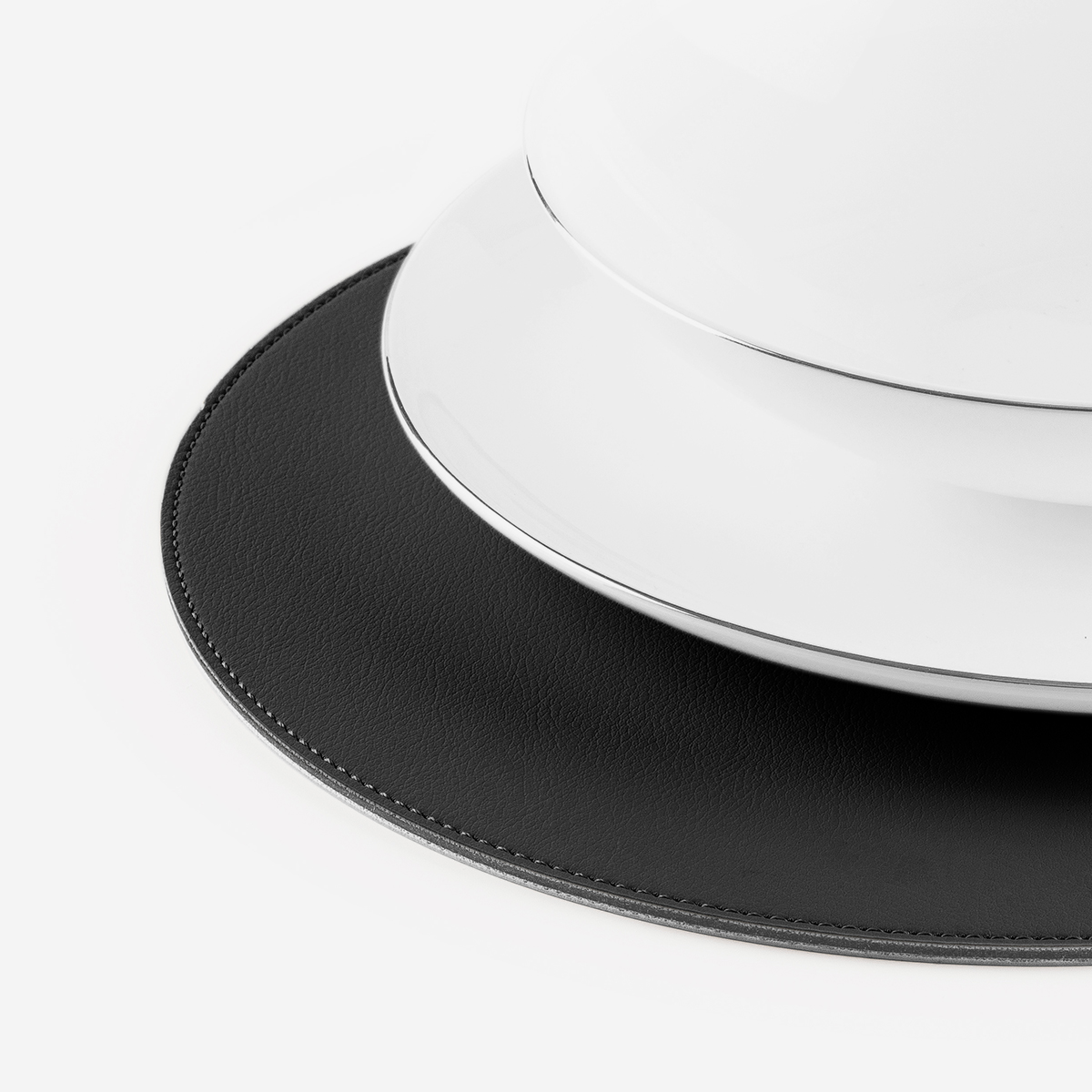 +iva /cadSous-assiette cousue à la main et réalisée en Nautica couleur Noir, un similicuir étudié spécifiquement pour le secteur nautique avec gaufrage délicat effet cuir et âme en cuir régénéré.