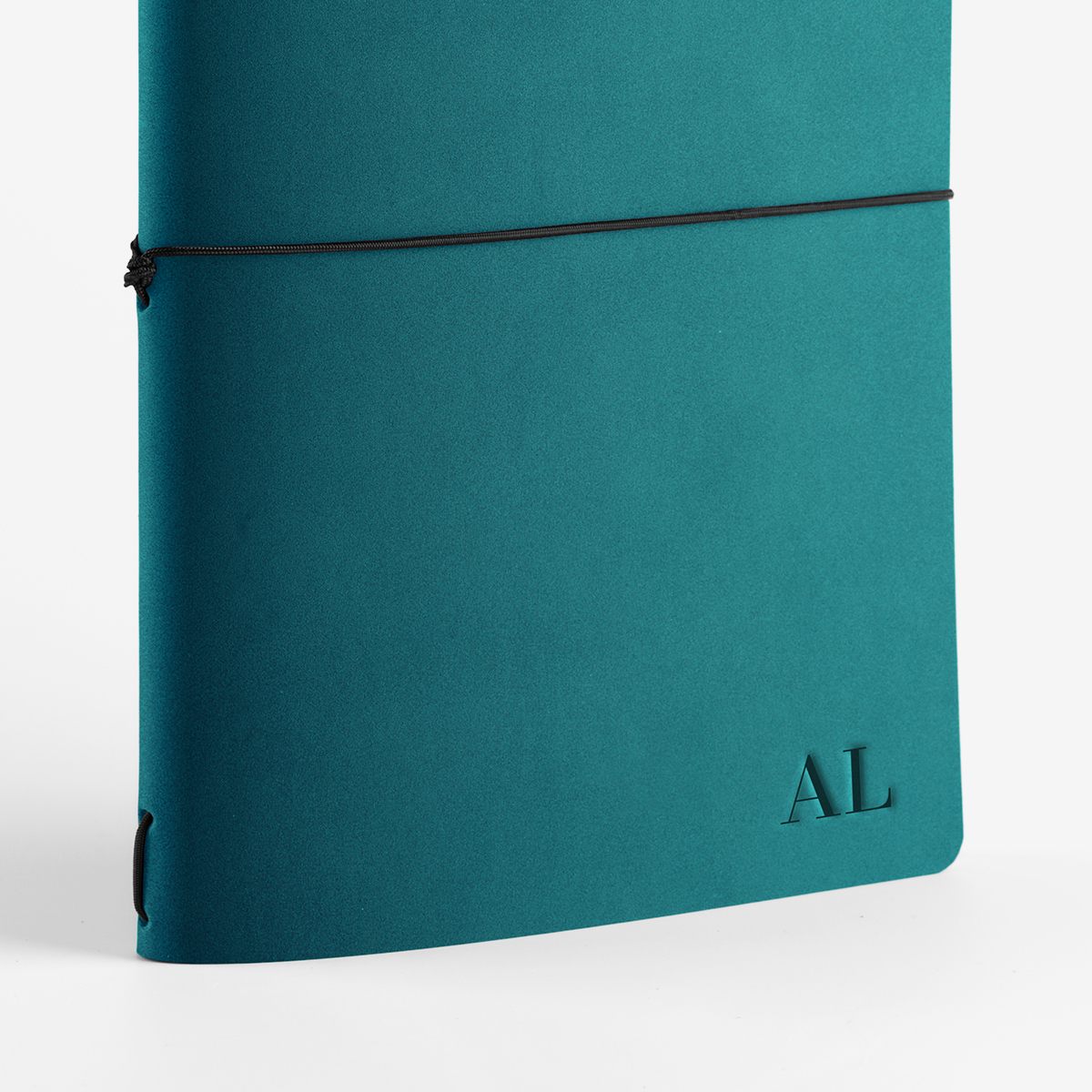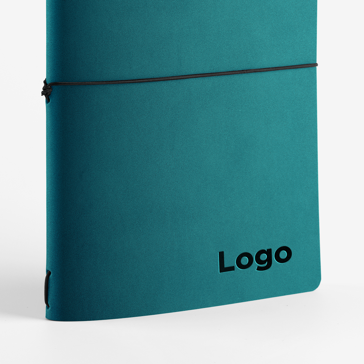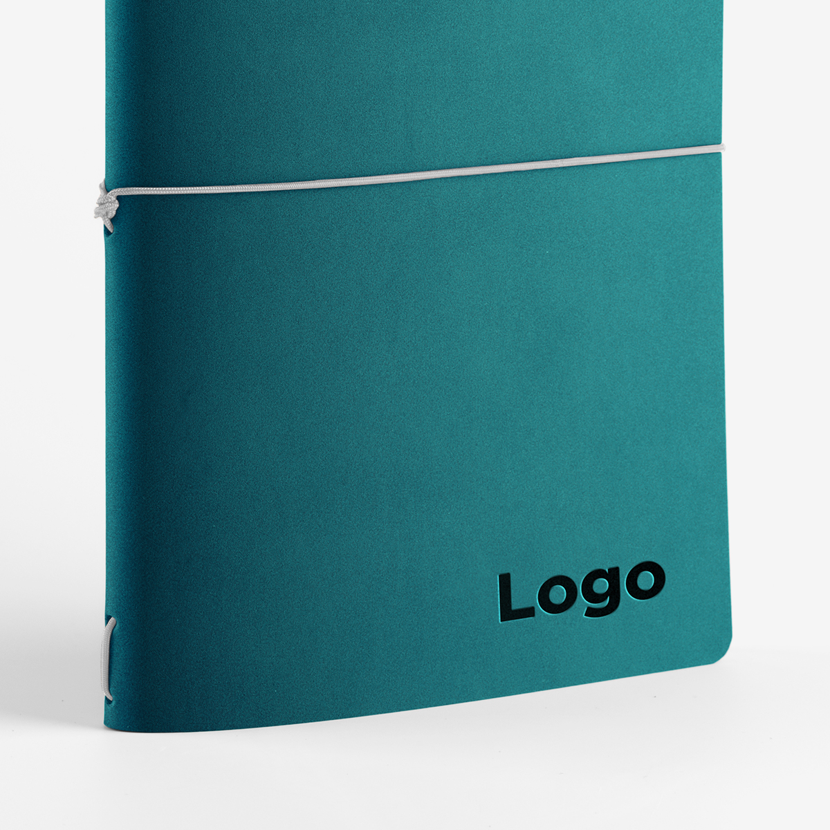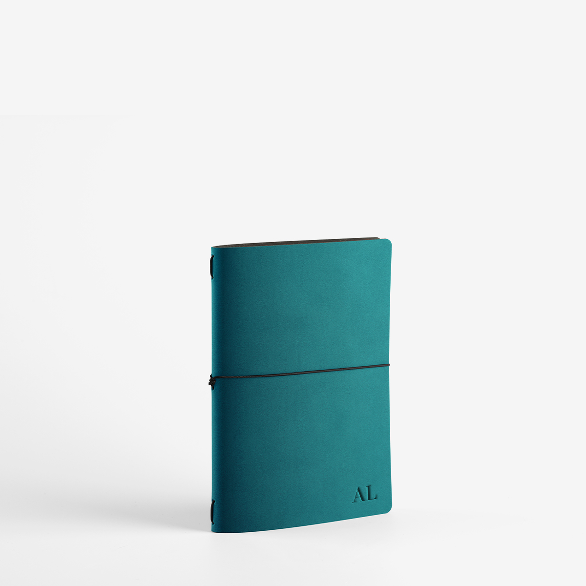 +iva /cadCarnet flexible de poche rechargeable réalisé par l’assemblage de similicuir Flox Aquamarine avec une couche de cuir régénéré naturel à l’intérieur. La surface externe en similicuir est floquée, douce au toucher, durable, résistante aux liquides et aux taches non tenaces.