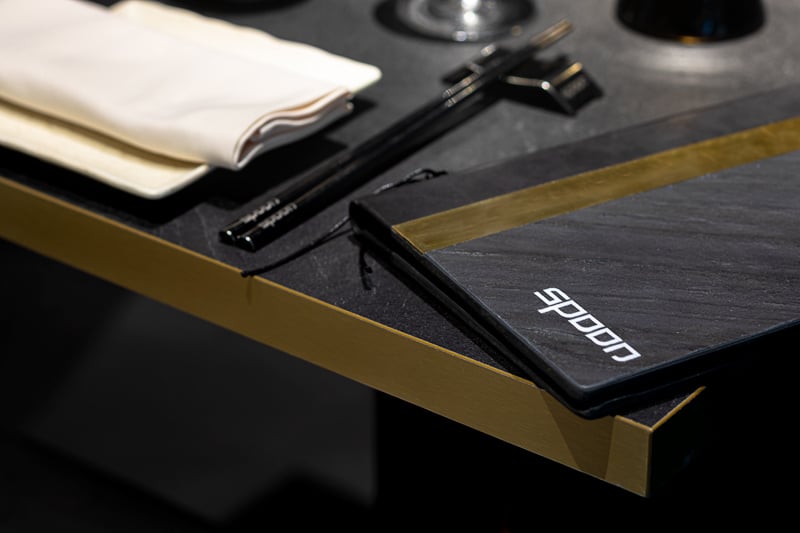 Dedans spoon porta menu pietra ottone bacchette cinesi