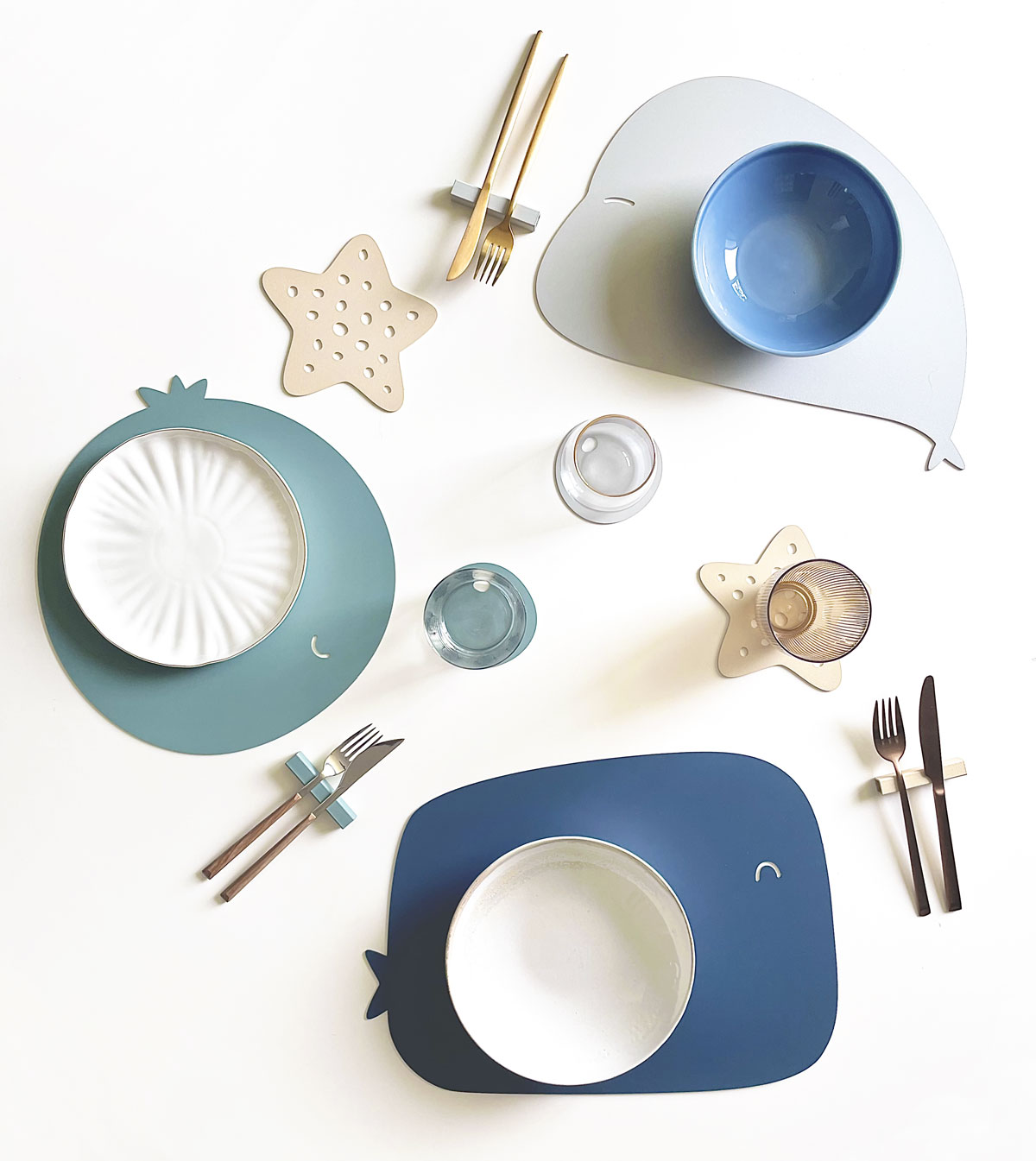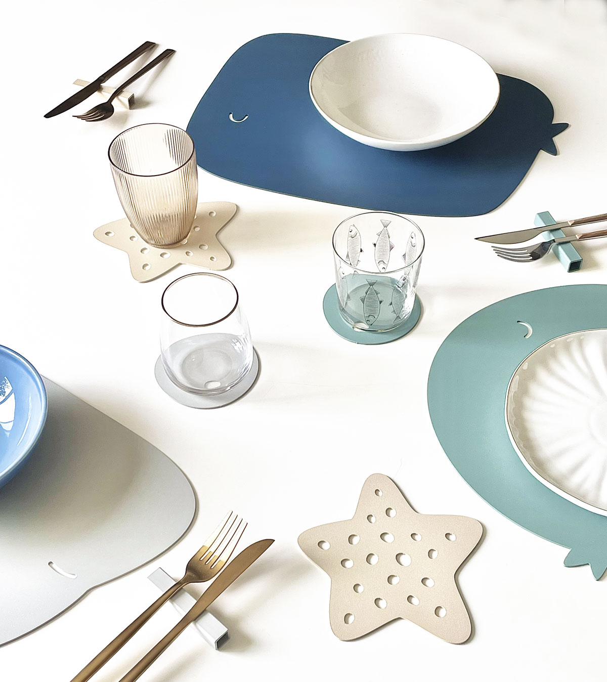 +iva /cadIl sottopiatto Dedans in alluminio verniciato a polvere color Emerald a forma di Pesce palla della linea Mare Seaside Set per ristoranti, hotel e la casa.
