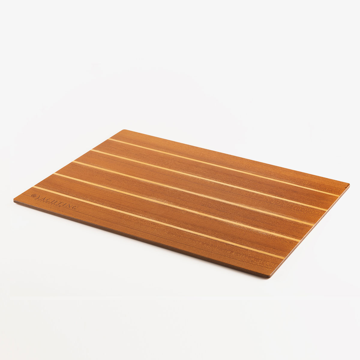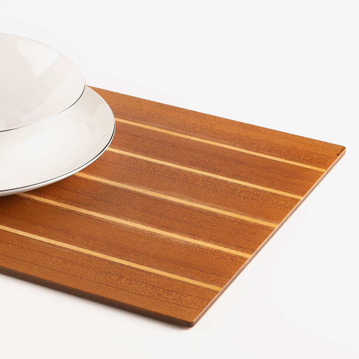 +iva /cadTovaglietta americana formato A3 420×300 mm in vero legno di Teak naturale con doghe in Acero in stile nautico con verniciatura protettiva trasparente super-opaca.