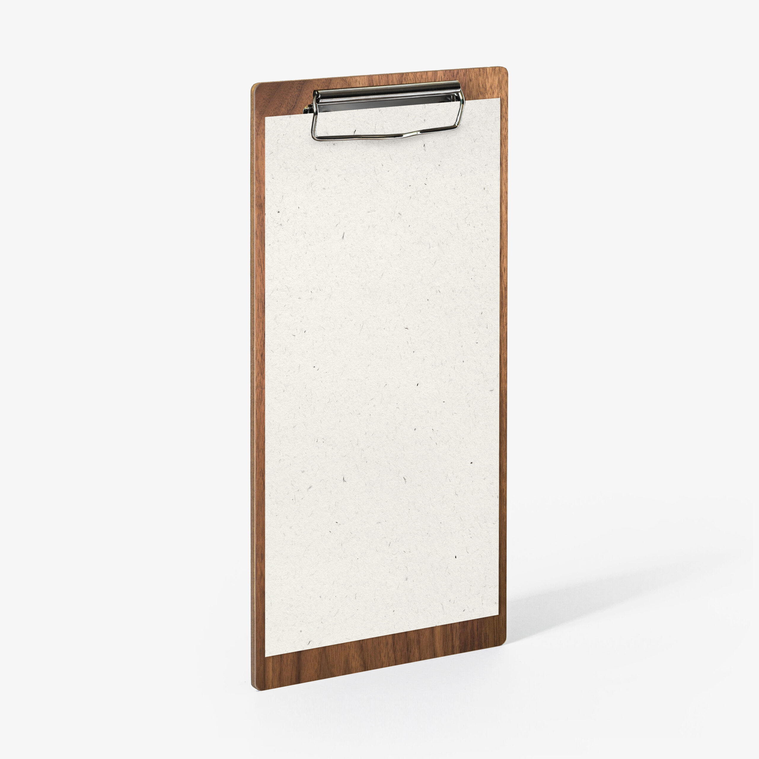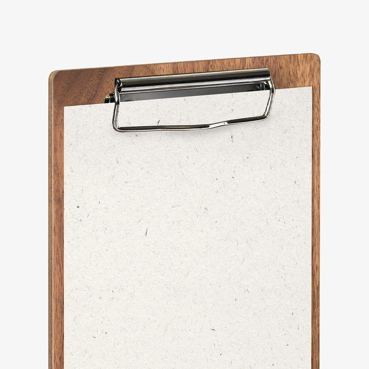 Disponibile in tre formati con sistema fermafogli a pinza metallica rivettata e con o senza personalizzazione in stampa termica o a laser.