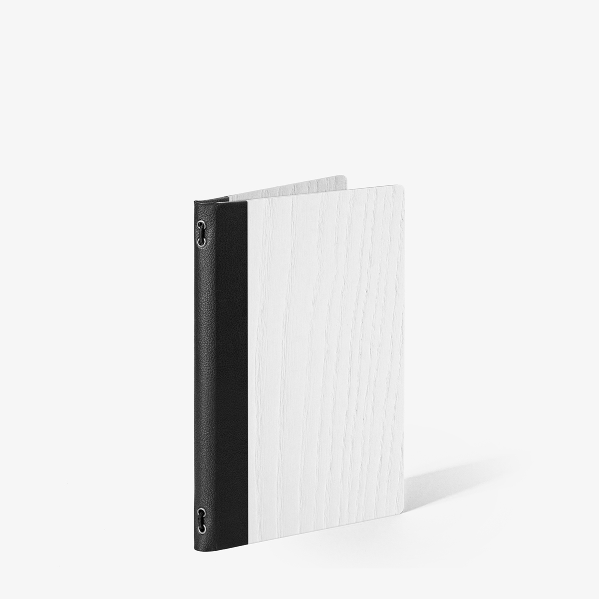 Disponibile in tre formati con sistema fermafogli ad elastico, cilindretti di ottone per buste in PVC o cartoncini plastificati (inclusi una coppia di buste o una coppia di cartoncini per inserire 4 facciate) e bacchetta in ottone in quattro finiture a scelta.